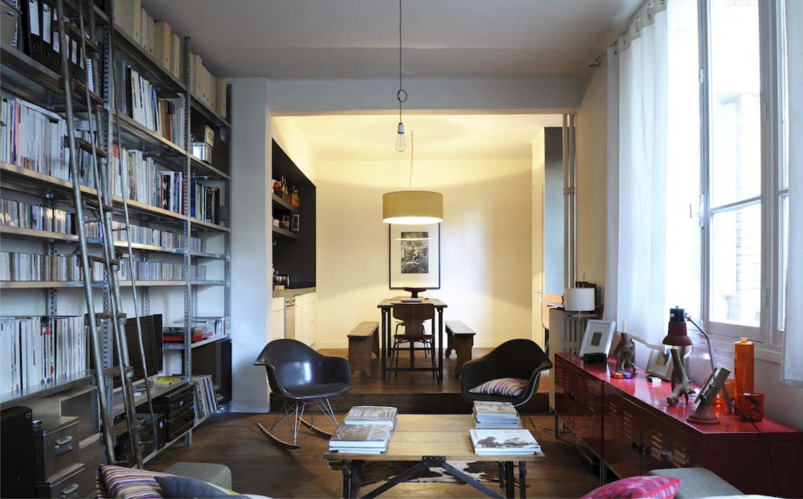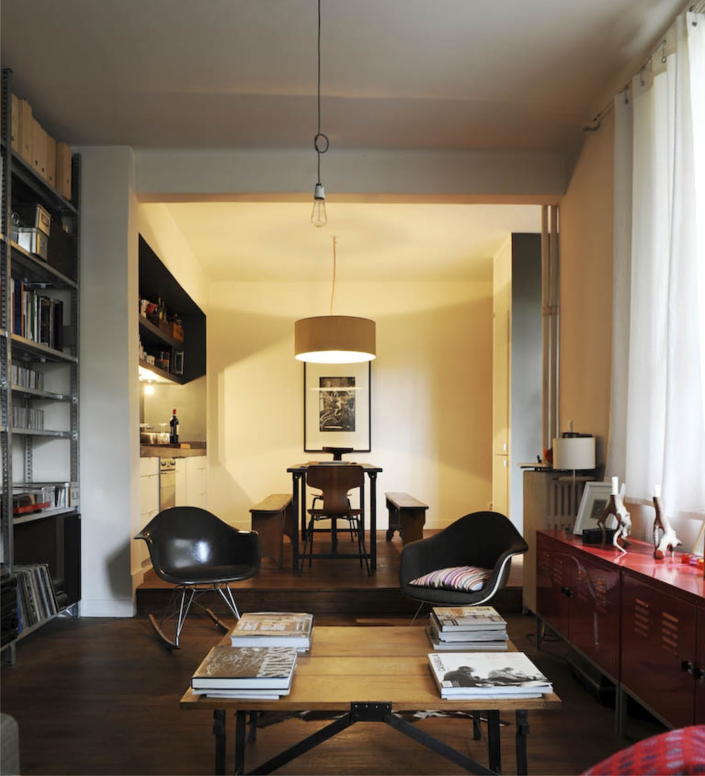 Marcado por el eclecticismo y el diálogo armónico entre los diferentes ambientes, se trata de una especie de "oda a lo retro", de la mano de piezas de mobiliario singulares y efectistas de los años 40, 50 y 60, como la Plastic y la Rocking chair, de los Eames, y los armarios de metal rojos de Ikea ( todo un contraste de edades ). La distribución general del espacio se hizo en base a la apertura de espacios, con lo que se eliminaron los tabiques y las puertas separadoras para conectar los diferentes ambientes de la vivienda.