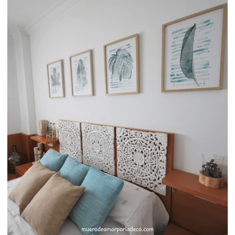 La descubrí, cuando estaba buscando, cuadros de hojas tropicales en tonalidades verdes, para darle un nuevo aire a mi dormitorio.