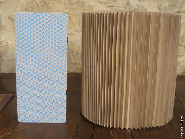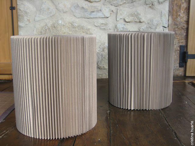 Los taburetes de cartón están plegaditos como un libro y en casa los montas como un acordeón , quedan muy chulos y son muy resistentes!