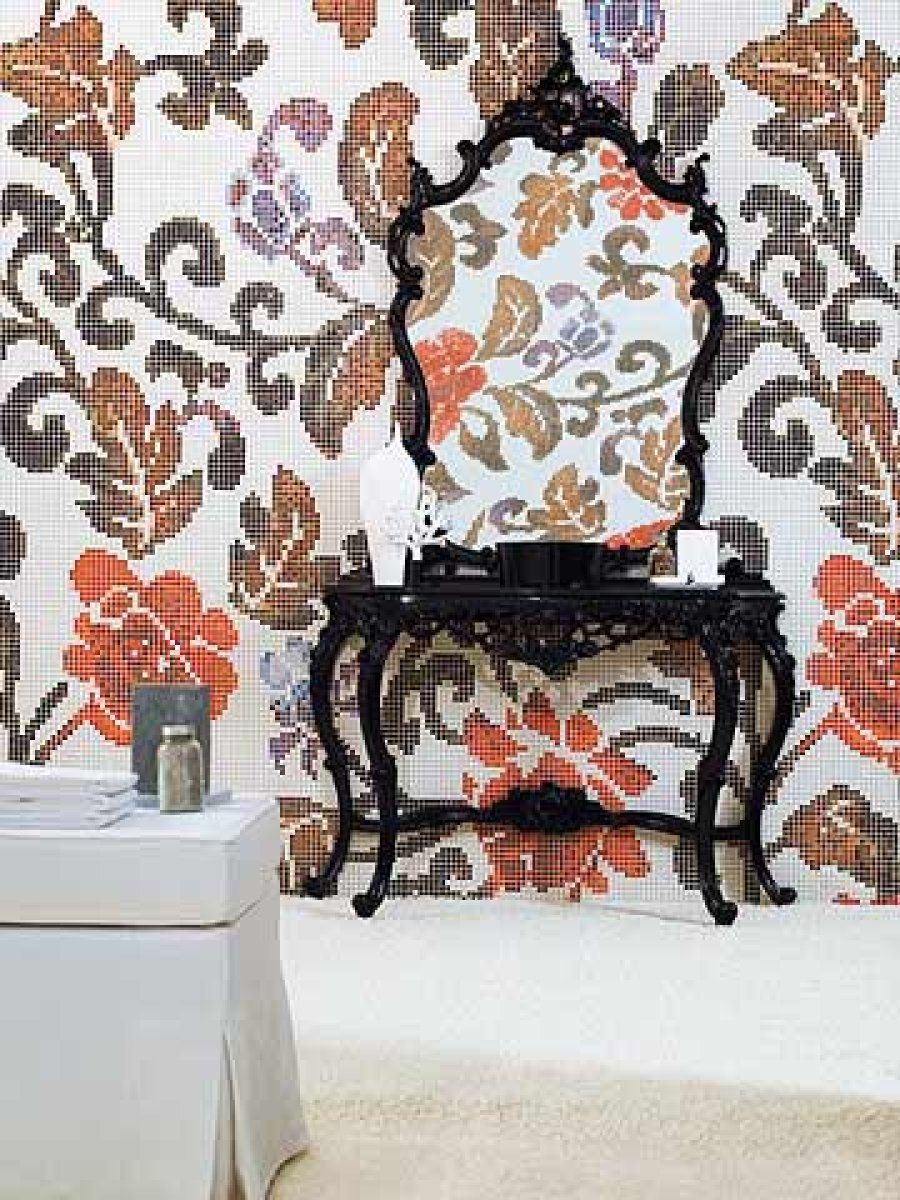 Winter Flowers Pink es un diseño de Carlo Dal Bianco para Bisazza. Evocando el brocado de antaño, las flores parecen extraídas de distinguidos tapizados franceses. El estampado bicromático se presenta en tres variantes de color suave combinando mosaico iridiscente Gloss con el de vidrio mate Vetricolor.Neoglass ha sido específicamente diseñado por Sicis para cubrir espacios privados que busquen deslumbrar por encima de todo. Sus geometrías luminosas sugieren un lujo decorativo, al tiempo que las composiciones llenas de matices acuden a nuestra mirada provocando ilusiones mágicas, flotando en el aire o el agua.