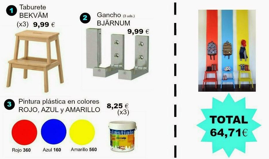 Bueno, espero que la reforma de esta entrada os haya gustado tanto como me ha gustado a mi. Es una solución llena de color, fácil de hacer y encima sale barata, no se puede pedir más!!