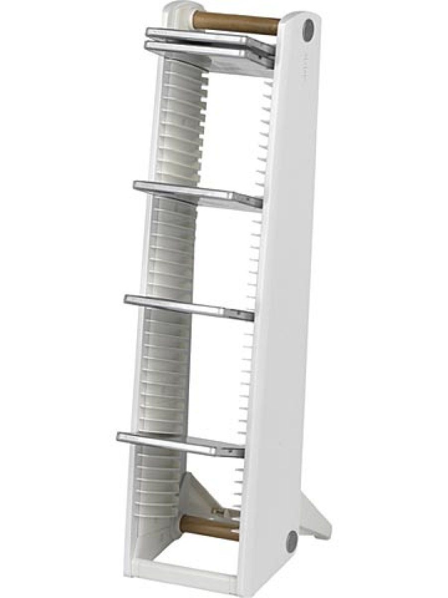 Entre los más sofisticados, encontramos este modelo que Balvi fabrica en blanco y negro. Podrás colocar hasta 25 CDs sujetos por un lateral, dejando a la vista prácticamente toda la caja que los contiene. Según el espacio, podrás colocarlo directamente en el suelo al lado del sofá en el salón, o bien en una oficina en cualquier lugar, y hasta en la mesa de trabajo si ésta es amplia.
