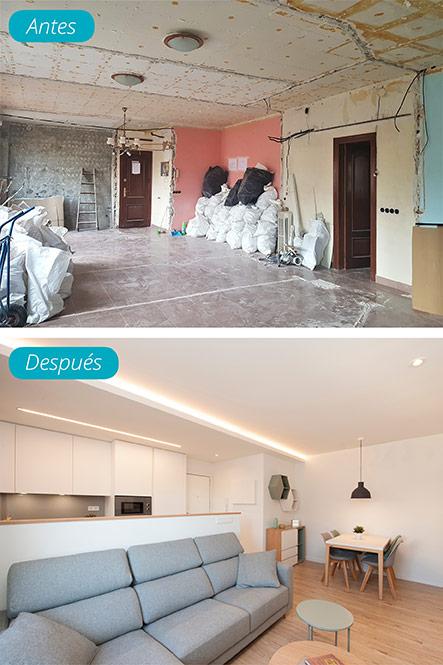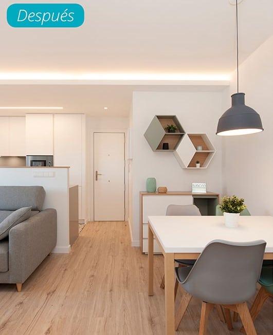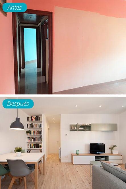 Mira y verás, como cambia una vivienda, después de anular esos tabiques inútiles, para crear espacios abiertos y llenos de magia, como han hecho los especialistas en reformas integrales en Barcelona Sincro:
