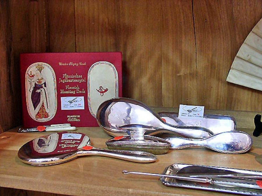 Réplica de baraja flamenca del siglo XV y juego de tocador de plata.