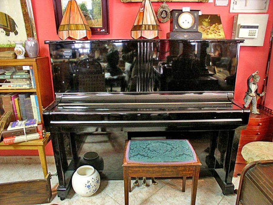 Piano, banquito y accesorios… todos ellos esperando la mejor puja.