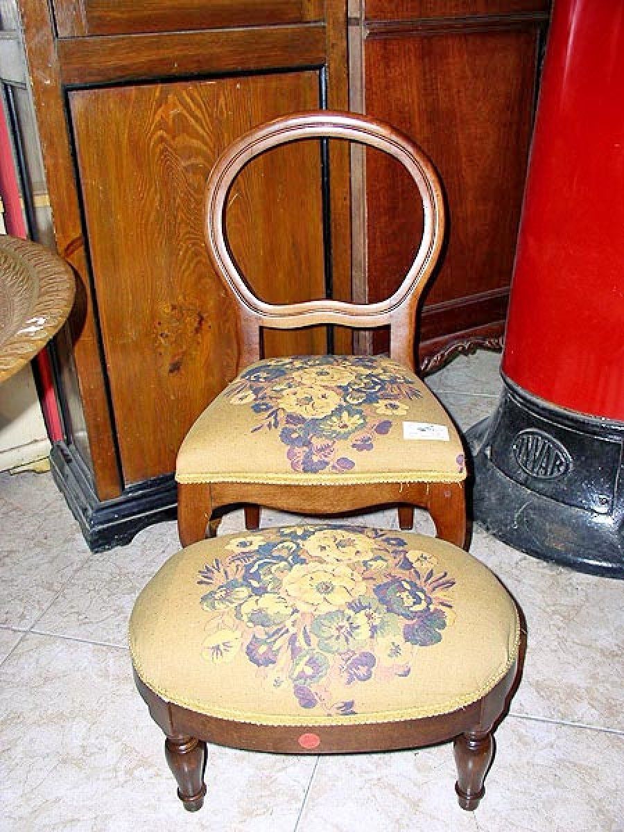 Juego de butaca y escabel.
