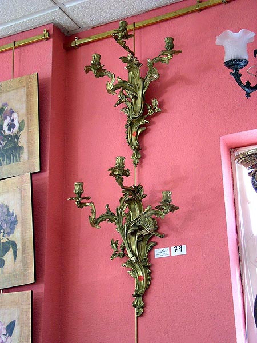Candelabros de bronce dorado art nouveau, de finales del XIX.