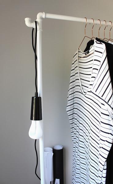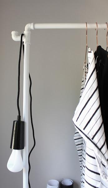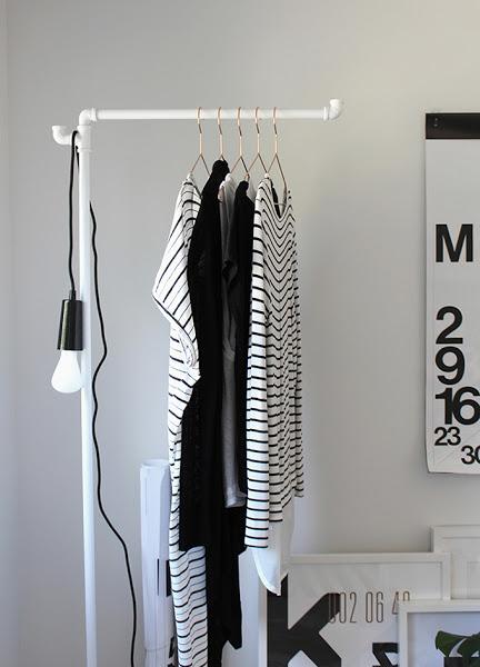 Hace un tiempo os enseñaba un colgador de ropa hecho con tuberías que os encantó (aquí) y muchos de vosotros pusisteis en práctica, pues aquí os dejo otro, igual de bonito y de sencillo de hacer. Una idea origina y muy práctica para decorar nuestro dormitorio.