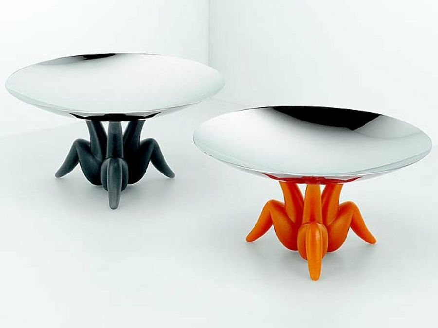 Juicy Salif es una obra que data del año 1990. Se trata de un elegante exprimidor de cítricos en aluminio fundido. Su estructura singular y extraordinaria lo ha convertido en uno de los íconos del diseño de la última década del siglo pasado y uno de los productos más demandados de la firma italiana.Les Ministres son un frutero y un centro de mesa disponibles en gris y en naranja que fueron creados por Starck en 1996. Estos artículos, fruto de la imaginación de este francés universal, serán todo un guiño a la extranvagancia si te decides a colocarlos en tu cocina.