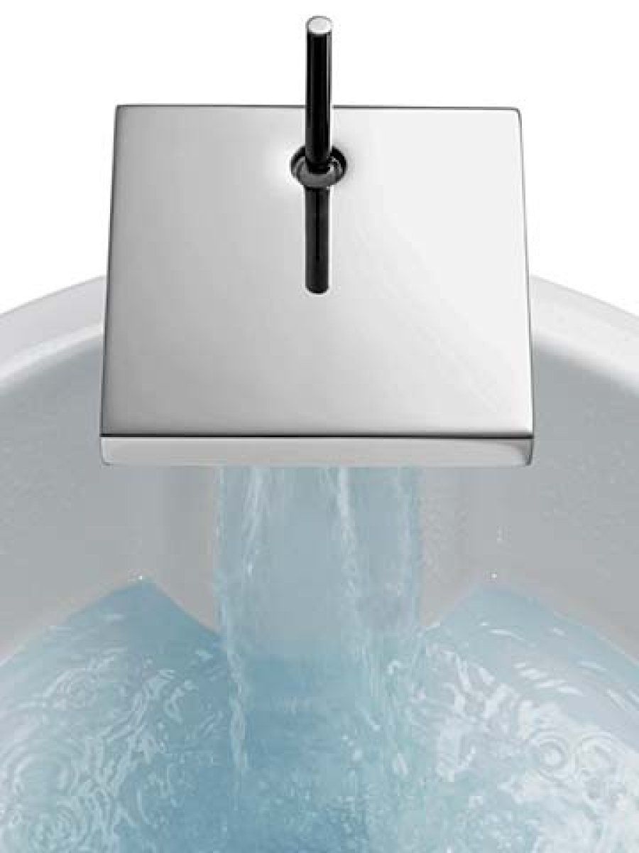 Esta brillante colección se ampara en la tecnología más revolucionaria. Un claro ejemplo viene de la mano de este mezclador monomando que más parece una escultura que un grifo. El agua cae desde una superficie de cromo en forma de cascada, rompiendo de nuevo los moldes de las costumbres estéticas.