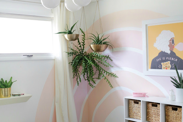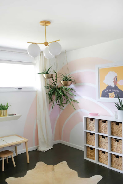Abeautifulmess nos enseña a hacer este arcoiris pintado en la pared. La forma de este arcoiris es imperfecta, lo que hace que nos guste aún más, además el proceso y creación será más rápido ya que no tienes que medir cada arco y curva para que queden perfectos!.