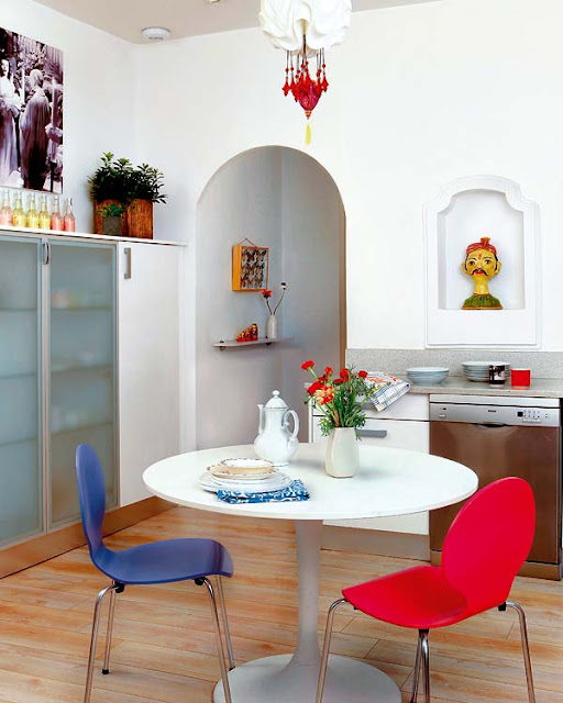Quiero compartirles esta encantadora decoración de este apartamento localizado en el centro de Madrid, cuyos dueños son una joven pareja que por lo general viven fuera. Lo compraron y reformaron dando rienda suelta a su imaginación , en mi opinión el resultado final es un piso lleno de color y buen gusto, con detalles excepcionales. Por aquí pueden ver las imágenes de esta hermosa decoración.