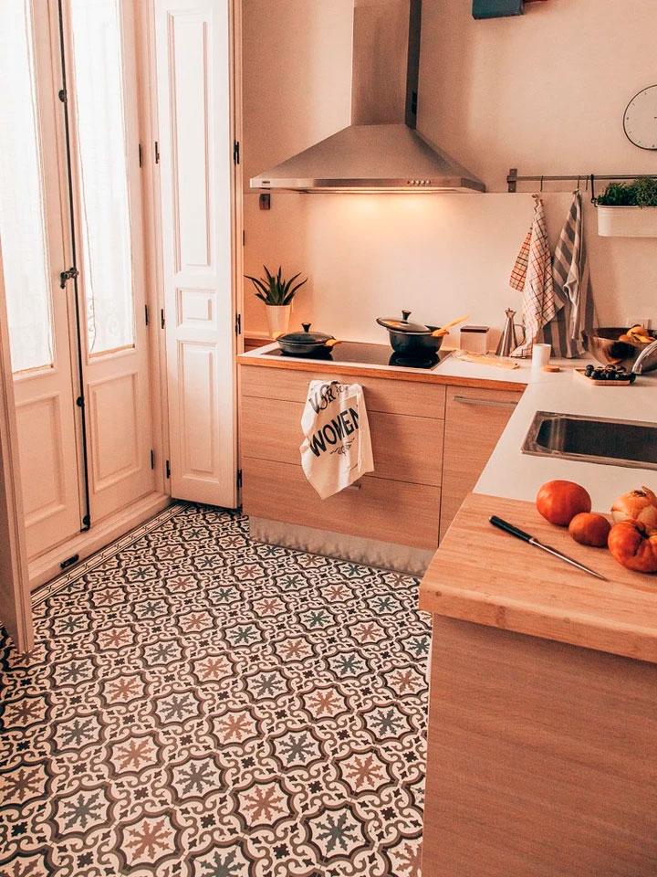 Igual no os lo creéis pero esto es una alfombra que ocupa toda la cocina. No se mueve, se puede fregar, es antibacteriana,… en fin que queda perfecta y sólo hay que comprar y colocar.