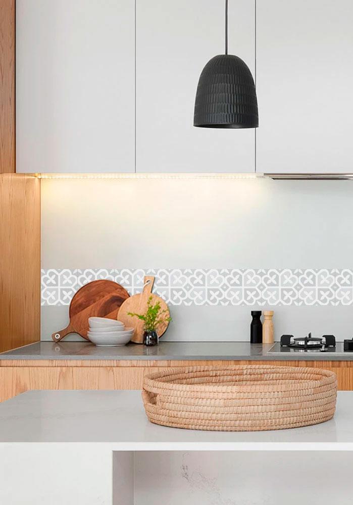 Si no te atreves con una pared completa, siempre puedes sustituir tu antigua cenefa de frutas feas ;-) por una más moderna y bonita.