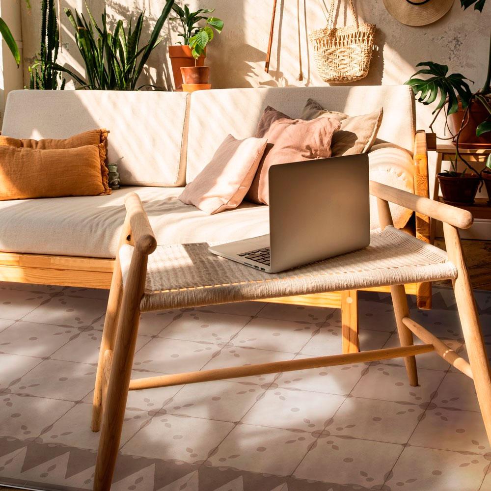 Es un lujo pensar que fácilmente podemos cambiar en una cocina los frentes de los armarios por ejemplo (los vinilos de Lokoloko son tan fuertes que se utilizan incluso en automoción, así que no penséis que no os durarían en la cocina), o el aspecto de las paredes haciendo parecer que tenemos un preciso mármol veteado en lugar de un azulejo del año de “Maricastaña”. Decir adiós a un esperpéntico suelo pegando sencillamente encima losetas o rollos de vinilos, que después se podrán fregar incluso con lejía, sin si quiera perder el color. O incluso si no te apetece trabajar, extender directamente una alfombra vinílica de Fancyhaus, cuyo mantenimiento es el mimo y con propiedades antibacterianas, impermeables y antideslizantes. Estas alfombras, que sólo tienen dos milímetros de grosor, no interrumpen la apertura de las puertas pero a su vez, en suelos muy fríos aíslan y pueden usarse con calefacciones de suelo radiante.