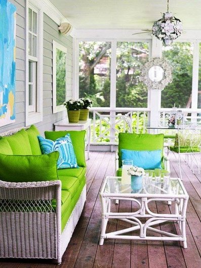 Que os parece este porche que cuenta con zona interior y exterior? En cuanto lo he visto he querido compartirlo porque tanto el diseño del jardín como lastelas utilizadas en ese llamativoverde manzaname han encantado. Es uno de los colores que más identificamos con el verano, y la combinación con los sofás y las sillas de hierro forjado queda estupenda. En conjunto es un increibleporche para ...