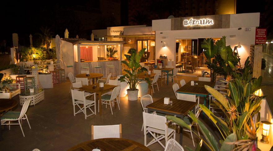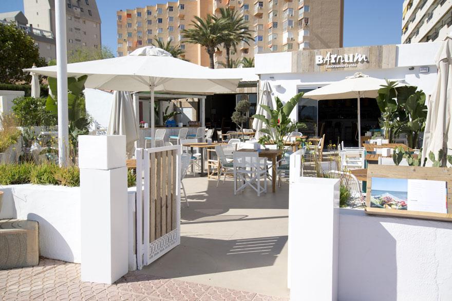 3.- Barnum: Bar y restaurante frente a la playa con una decoración cálida. Madera, plantas de plátano tropical, lámparas de ratán y un esquema de color en blanco y natural perfecto para relajarse al aire libre.