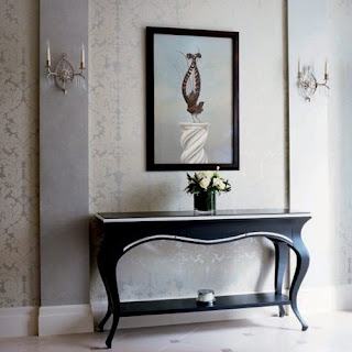 Foto de : ideascasas.com En los recibidores que normalmente son pequeños y les quieres dar un toque elegante , pon un papel en la pared principal , que normalmente es donde esta el mueble , buscalo bien extremado , cuidado con los colores que no sean muy oscuros y el resto de paredes pintalas del color que mas le pegue al papel y ya verás que bienvenida mas elegante o alegre que darás a tus invitados.