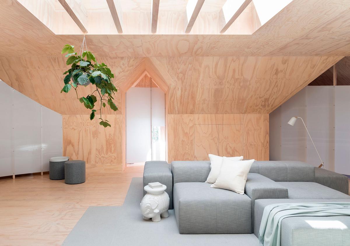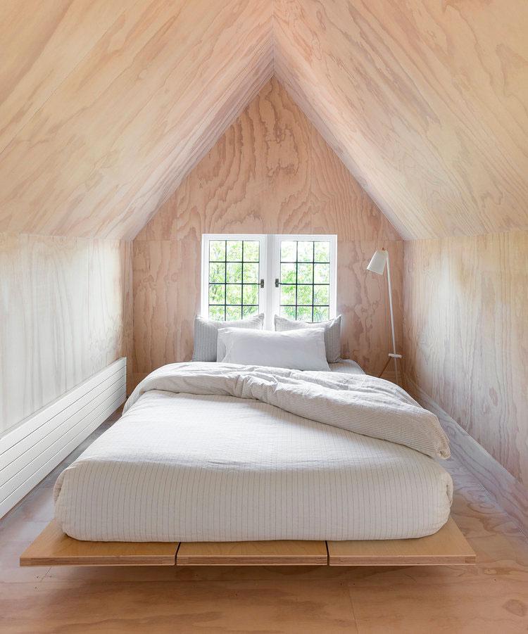 Lo que más me ha desconcertado es el ático, parece que estás en otro lugar, una vivienda distinta. No es que no me guste, todo lo contrario, es que simplemente no creo que nadie que entre por la puerta, espere descubrir un lugar así cuando sube las escaleras ¿Qué opináis? Se oculta detrás de lo que parecen unas puertas de armario, pero realmente son unas escaleras por las que se accede al ático. Allí se encuentra un dormitorio y una zona de estar completa.