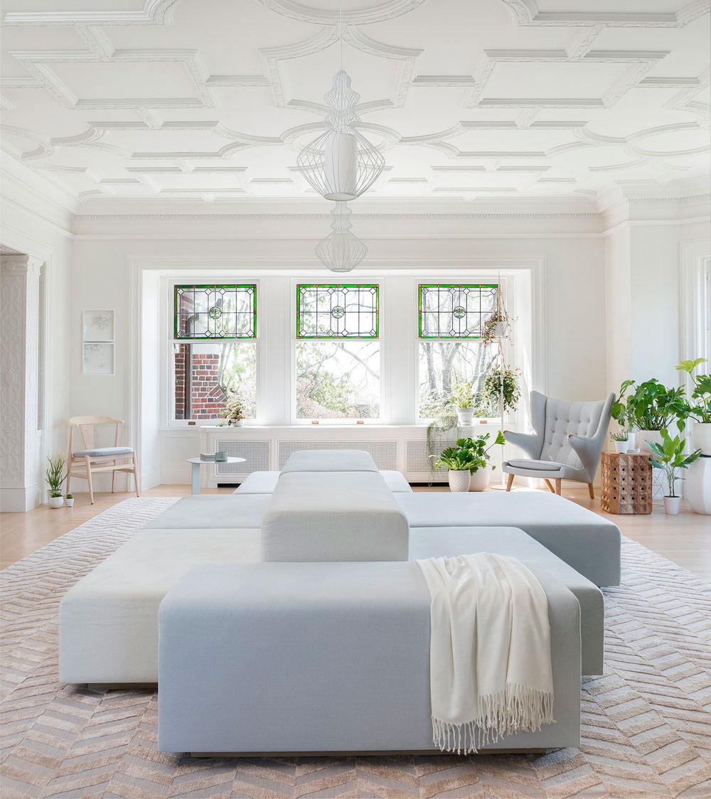 Os traigo para empezar esta belleza de 1915, con la que tengo ciertos sentimientos encontrados. Las obras de remodelación se llevaron a cabo por DeForest Architects y el interiorismo pertenece al estudio NB Design Group. Nada más entrar se aprecia el contraste entre la antigua edificación de ladrillo y el añadido que se realizó como nueva entrada de la casa, a modo de porche acristalado, que lo inunda todo de luz. Me encanta cómo se ha resuelto el espacio con un simple perchero con zapatero incorporado, muy útil para dejar abrigos y zapatos al llegar. Un puf hace las veces de descalzador y el toque de las plantas le da sensación de confort a una gama cromática en negros y grises. Por cierto un acierto el suelo de cemento en la entrada para facilitar la limpieza.