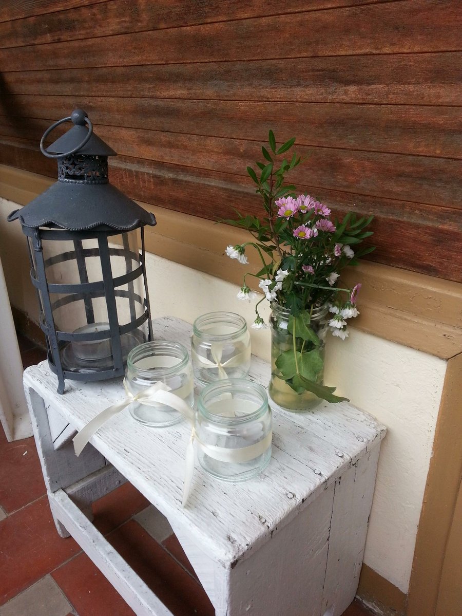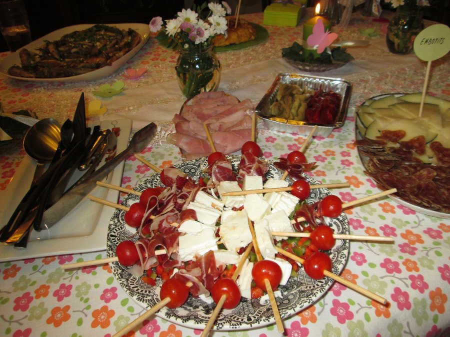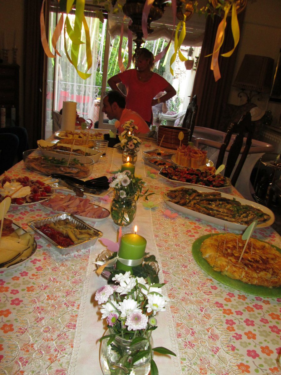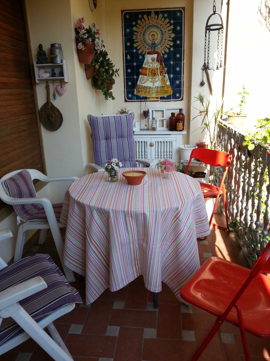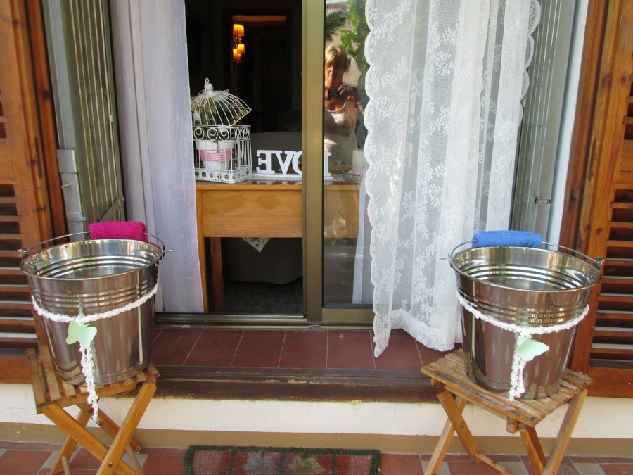 Areglos de la terraza y chuches en las mesitas, del aperitivo