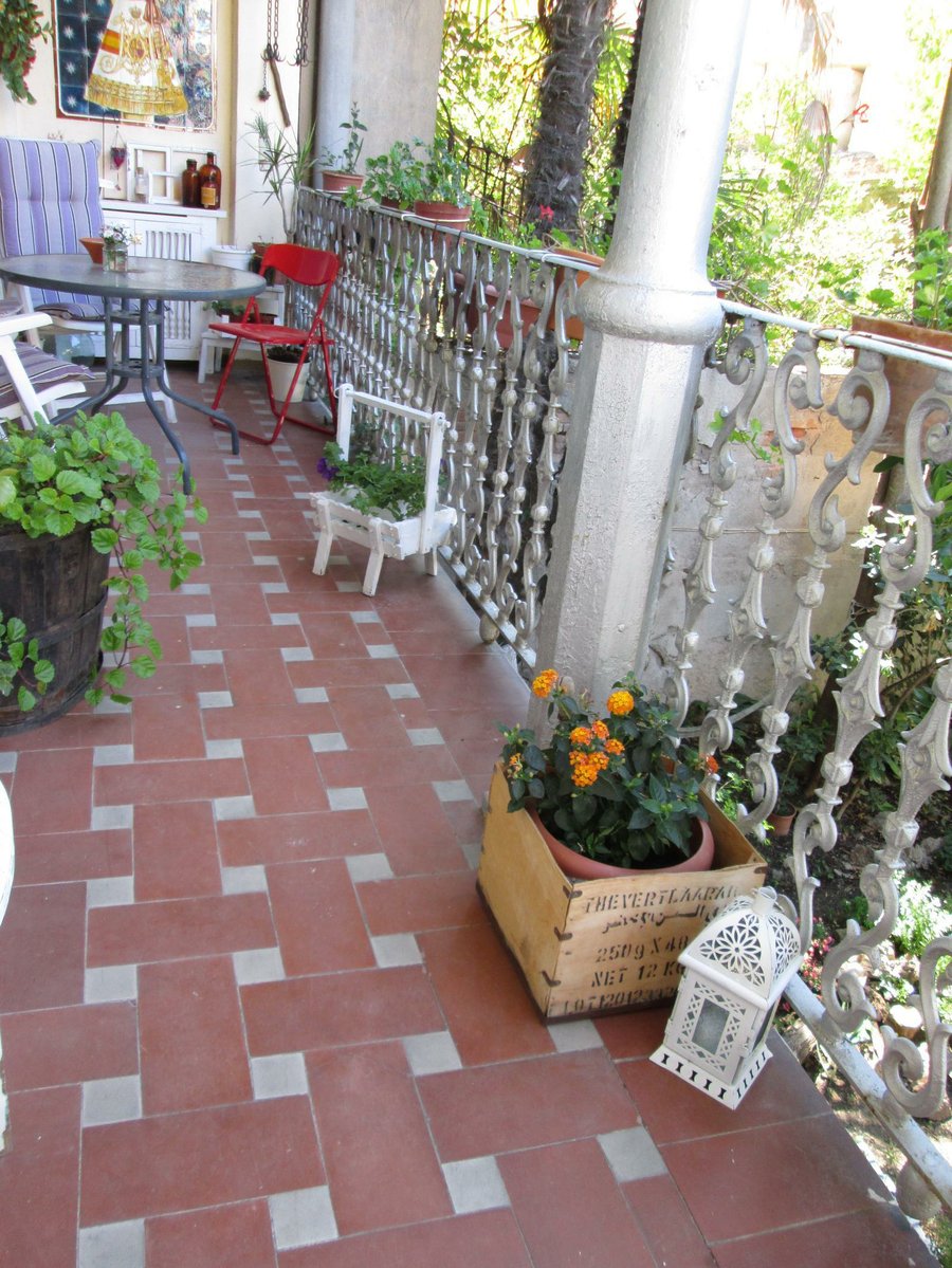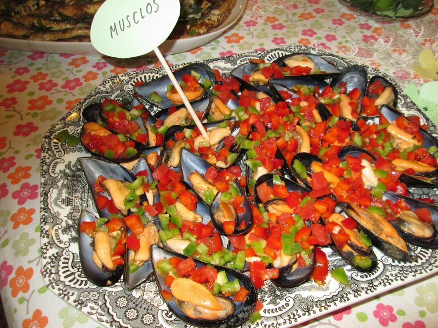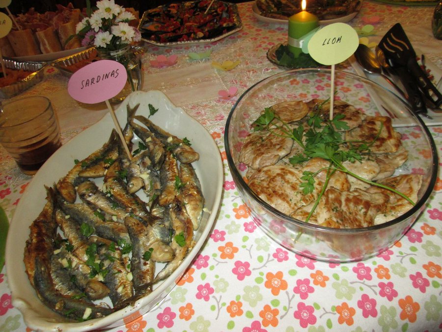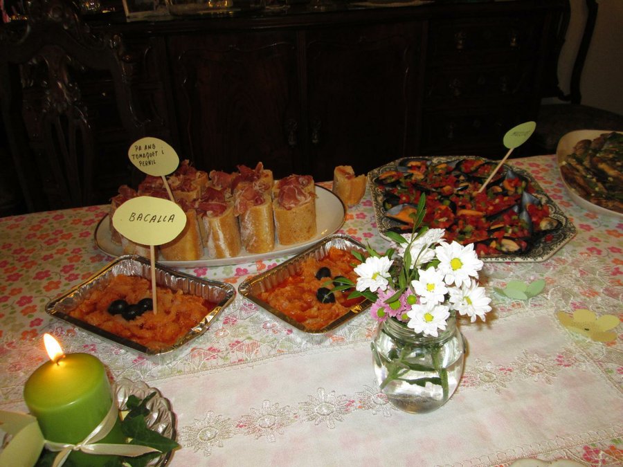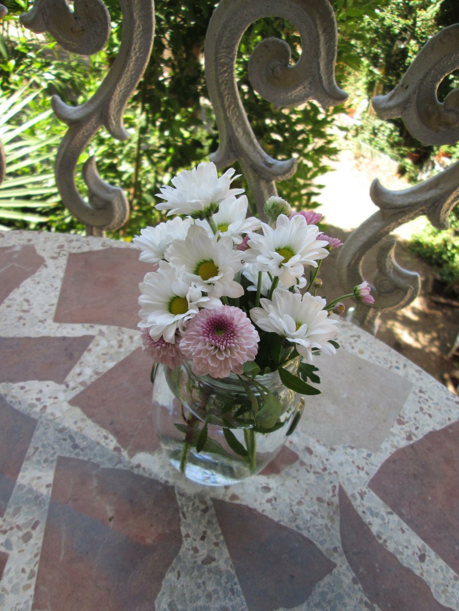 Areglos de la terraza y chuches en las mesitas, del aperitivo