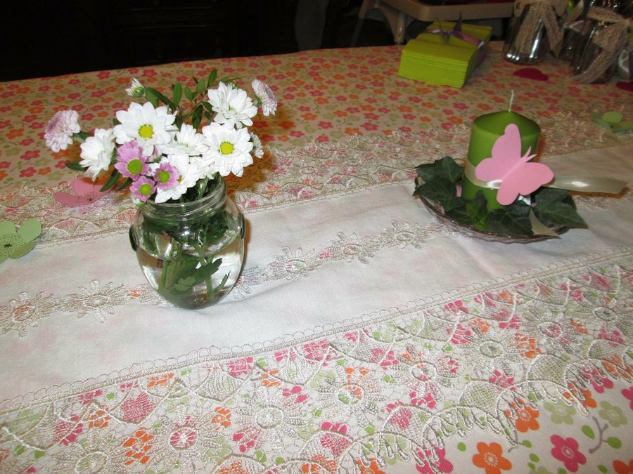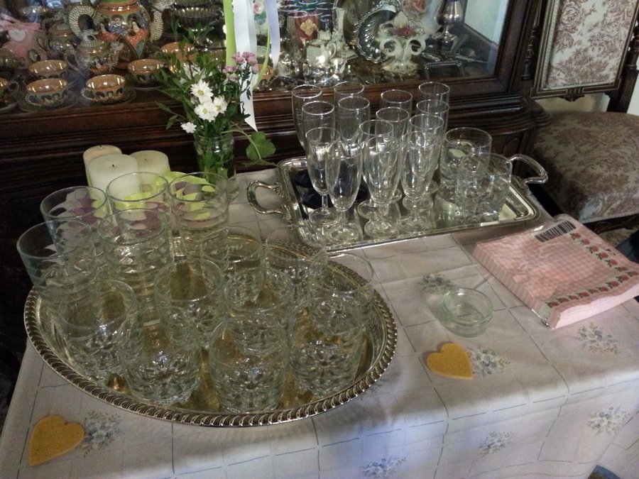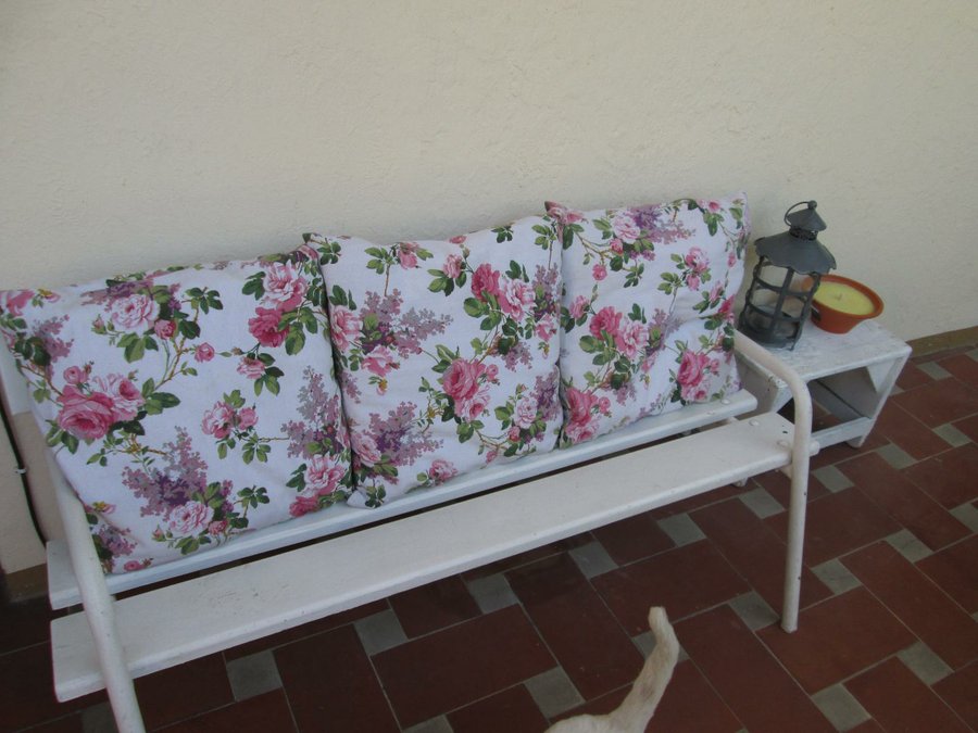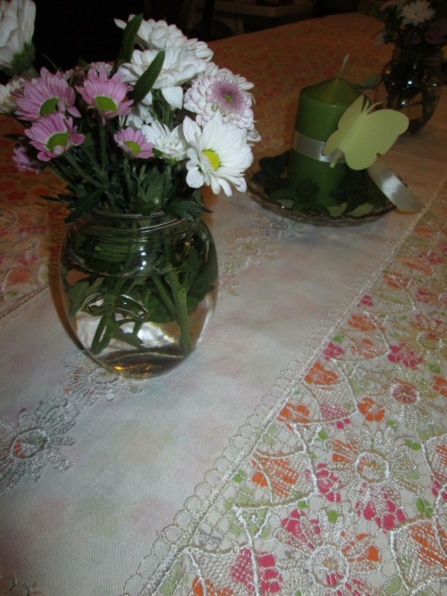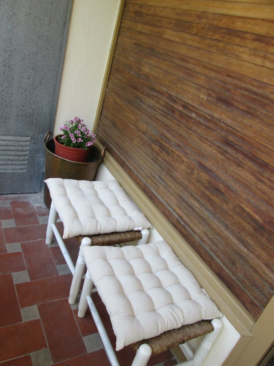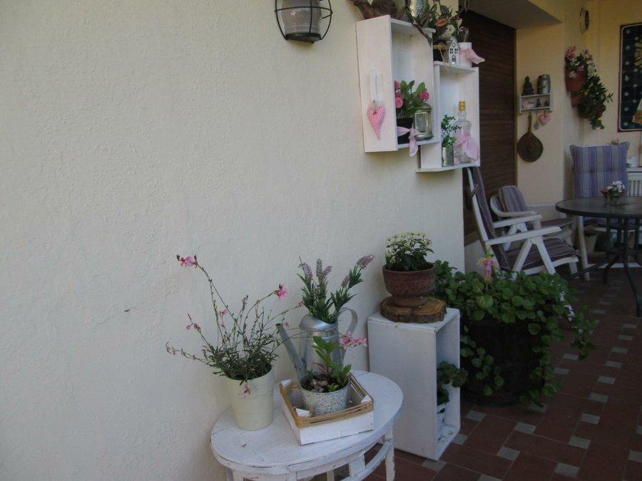 Areglos de la terraza y chuches en las mesitas, del aperitivo