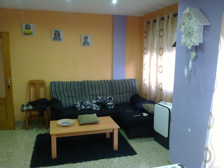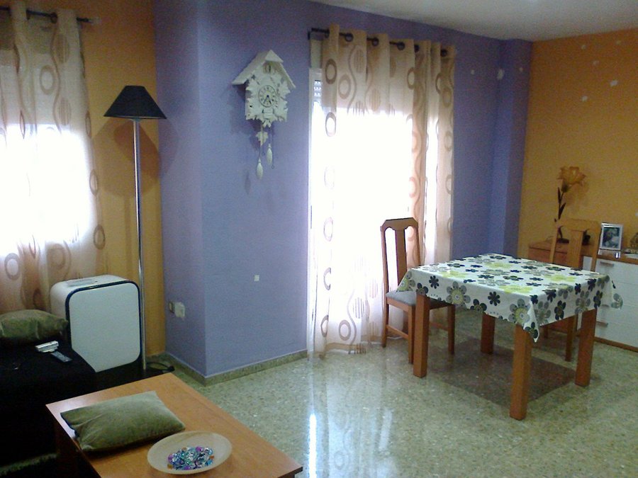 Como véis, los colores de las paredes son un poco "peculiares" y aunque cuando las pinté esos colores me gustaban por ser "pastel" la verdad es que enseguida aburren y, además, la decoración está totalmente incoherente: cortinas cuyo color no pegan con nada, sofá de otro color, muebles de otro color... en fin, un galimatías de comedor.