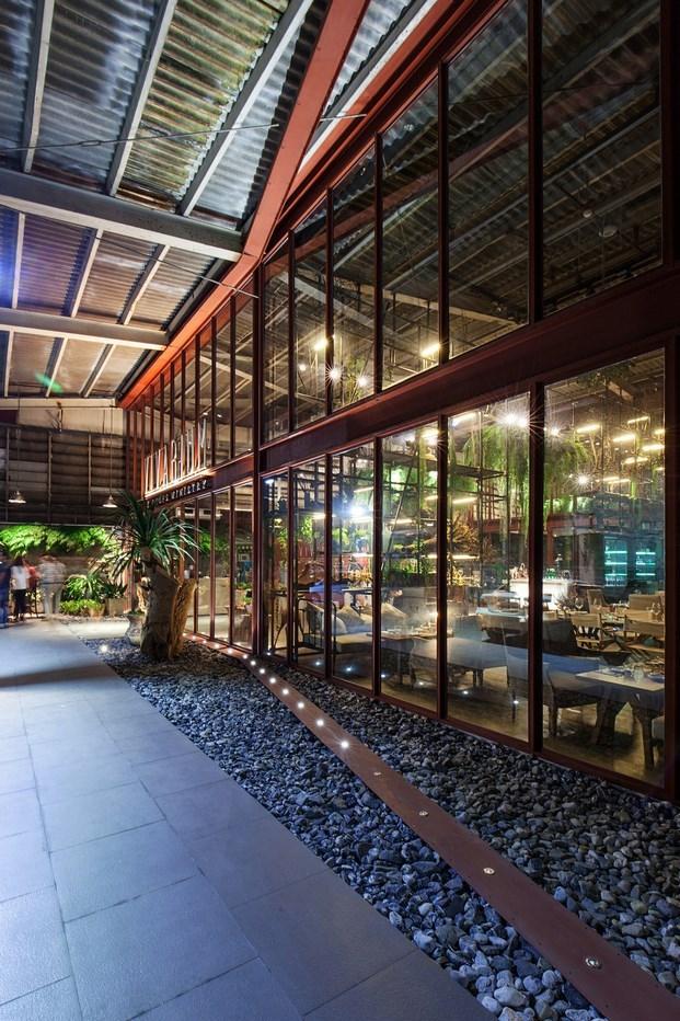 Un antiguo almacén transformado por el estudio Hypothesis, es el escenario del restaurante tailandés. Se han arreglado las estructuras ya existentes, remarcándolas en color blanco, sin embargo, los añadidos han sido pintados con recubrimiento antióxido, generando contraste entre lo nuevo y lo viejo.