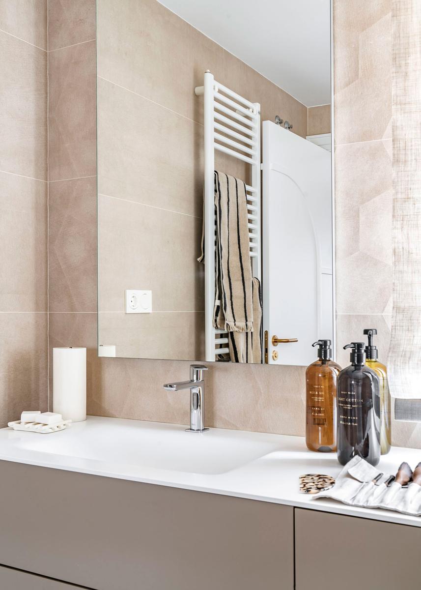 Del baño se conservó casi todo, sólo se cambió el armario por uno suspendido y de diseño minimalista, la grifería y el espejo, pero todo muy sencillo y atemporal.