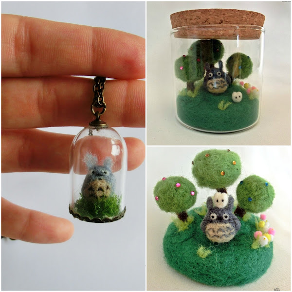 Como os he comentado antes, MJ trabaja principalmente el fieltro para realizar sus creaciones. Ella usa el fieltro en sus distintas formas (fieltro plano, lana de fieltro...) y dependiendo del trabajo que vaya a realizar usa una técnica u otra. Me comentaba que suele usar la técnica del afieltrado en seco (needle felting) y en otras ocasiones el afieltrado en mojado (wet felting), siendo esta ultima una técnica mas compleja que requiere mas tiempo y dedicación.