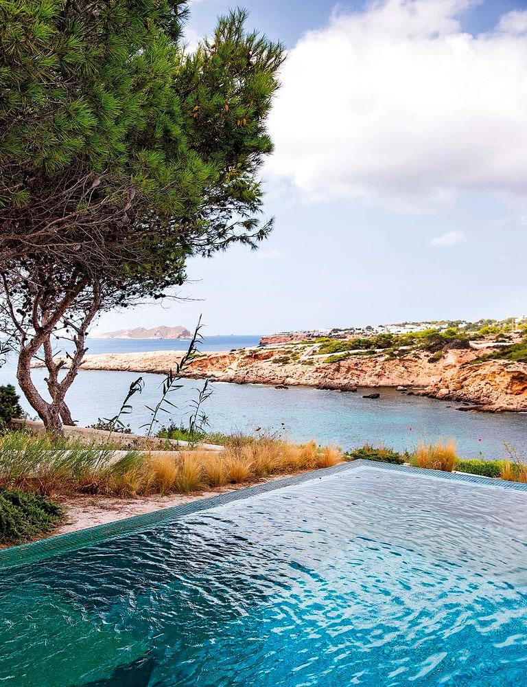 Esta vivienda pertenece a una pareja sin niños que buscaban pasar largas temporadas en la isla. Se decantaron por este emplazamiento en una cala de San José, ya que tenía acceso directo al embarcadero desde el jardín y él, es un enamorado de navegar por lo que poder atracar su barco en la misma puerta de su casa, era un sueño.