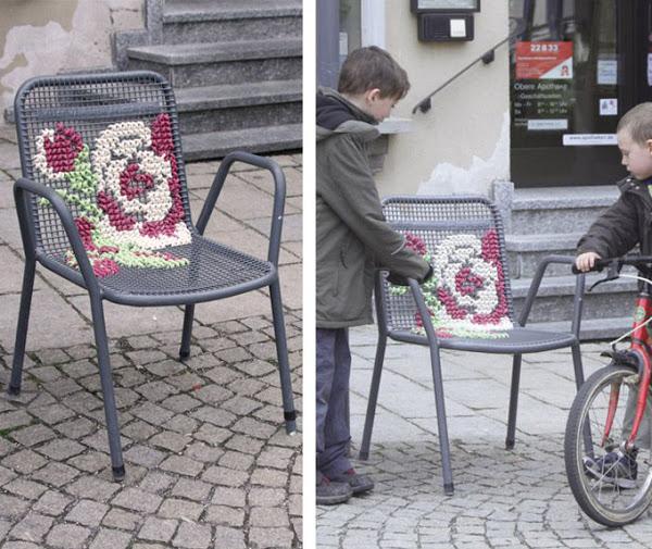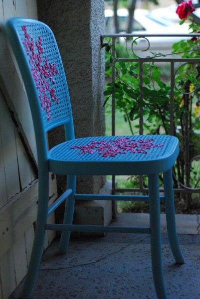 Nunca se me hubiera ocurrido hacer un dibujo con punto de cruz utilizando la rejilla de una silla y la verdad es que cuando lo vi me pareció espectacular. Y sino mirad las imágenes. Qué tengáis un maravilloso fin de semana!!
