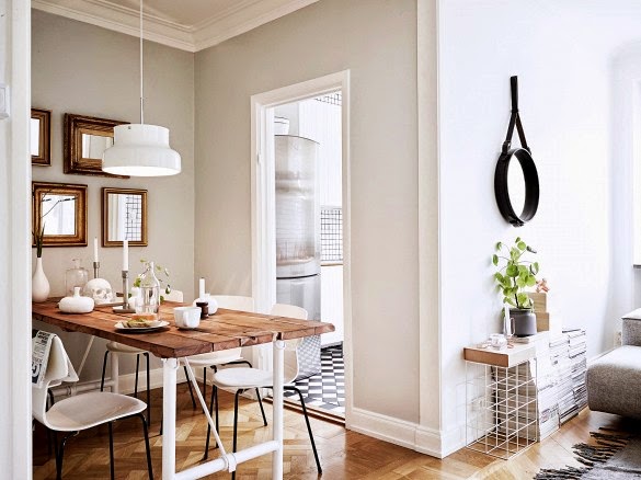 El apartamento que os muestro es de poco metros cuadrados, pero muy acogedor, situado en Estocolmo. De estilo nórdico estaba claro por su ubicación, predomina el blanco y algún color tierra y madera; tanto en el suelo con la instalación de parquet, como en la decoración con mobiliario muy actual. Como podéis observar con tan pocos metros se le saca bastante partido a cada rincón.