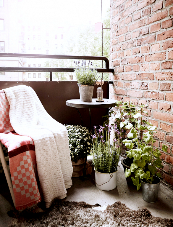En la terraza, una hermosa pared de ladrillo visto con unas hermosas flores hacen el rincón perfecto para que puedan disfrutar de los pocos rayos de sol.