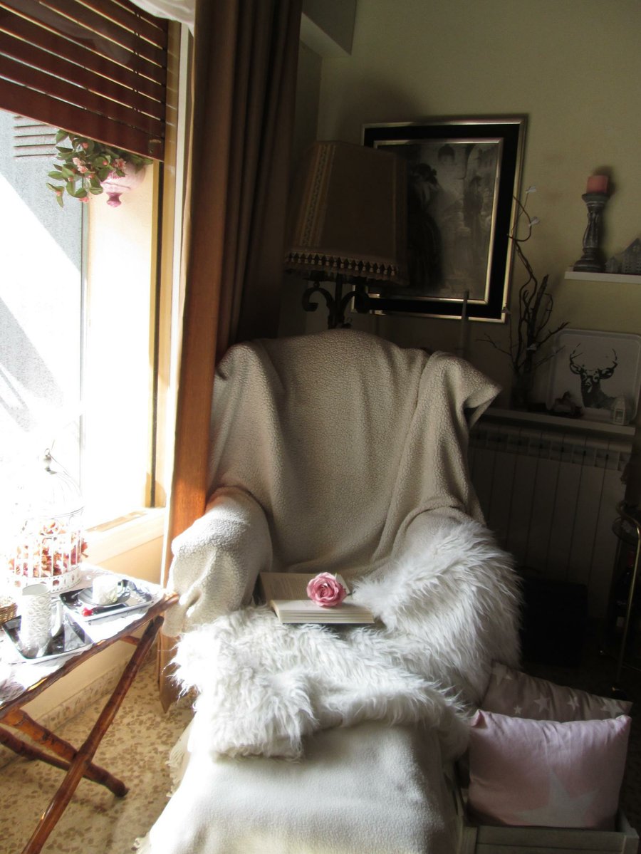 Buen momento para refugiarnos, de nuestro rincon preferido y disfrutar de la lectura de un buen libro, con bonita y suave, musica de fondo