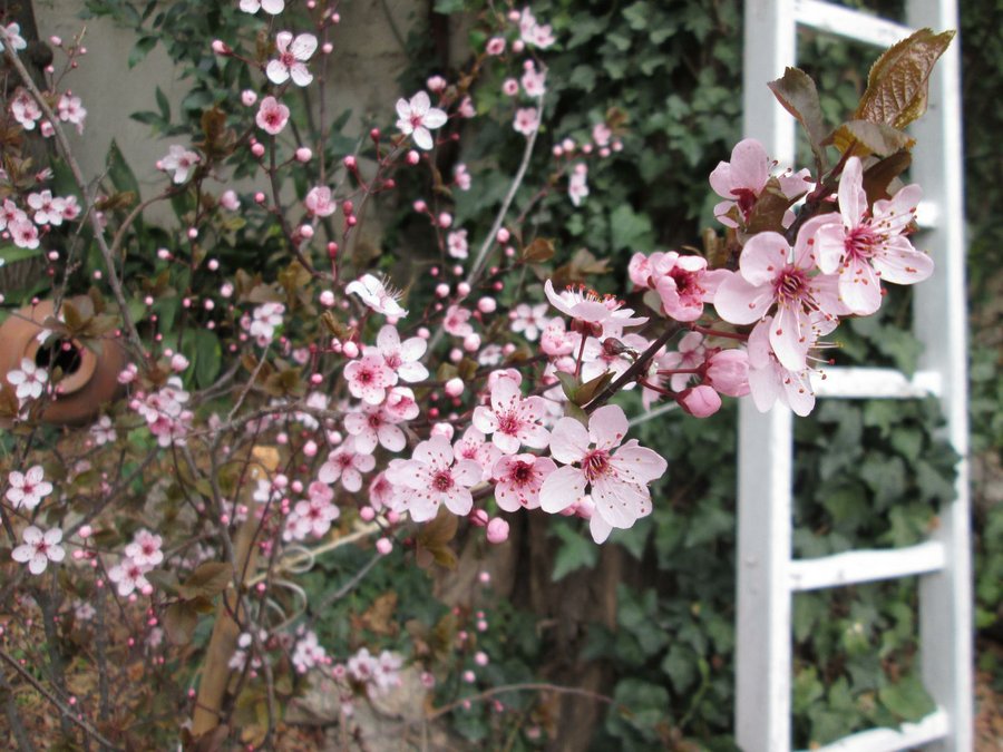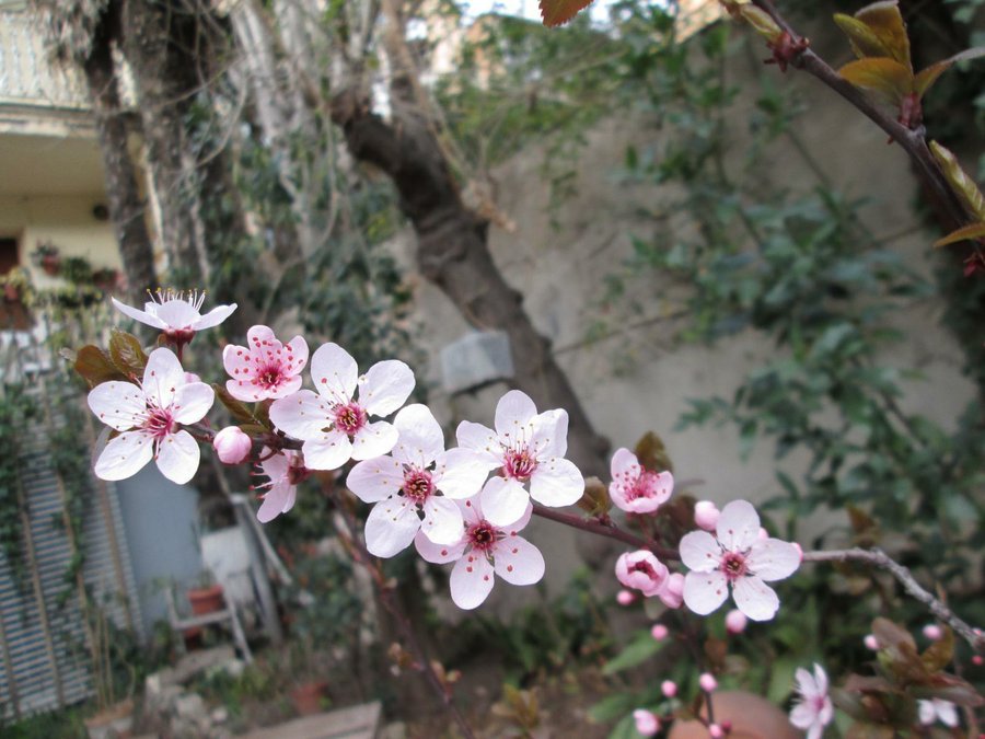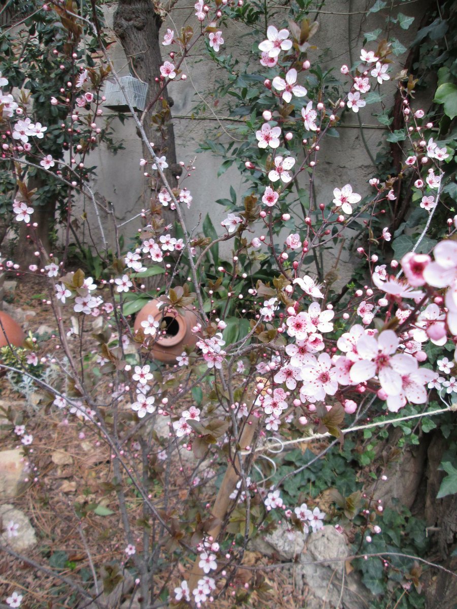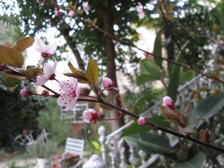 Y, con ganas de Primavera, salgo al jardin, a buscar algunos brotes, que asoman entre las hojas del cerezo.