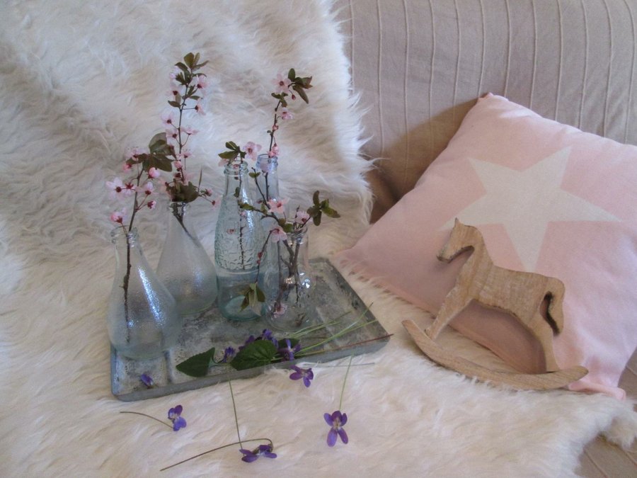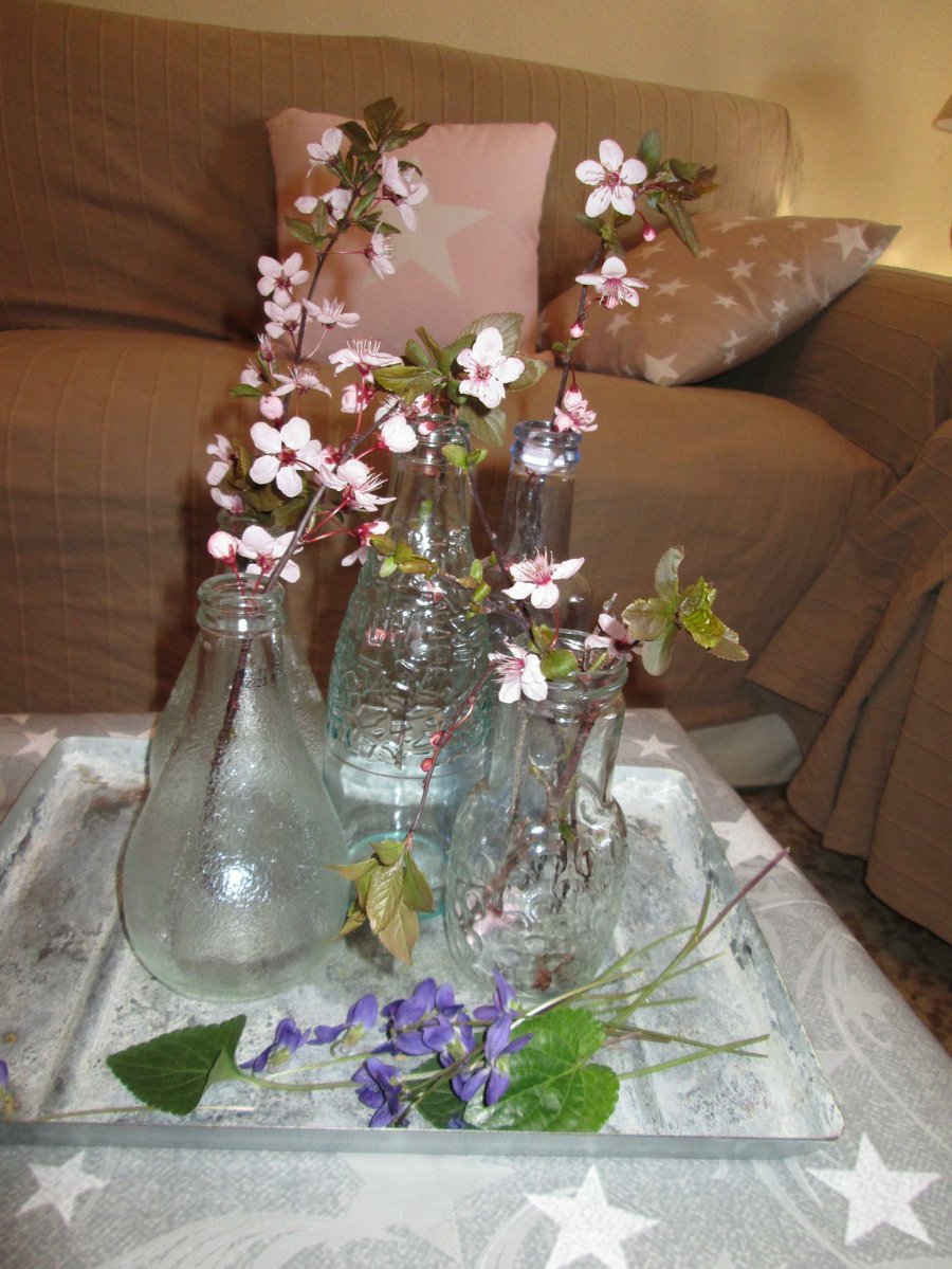 Aunque en la calle tengamos bajas temperaturas aun, parece que con estas ramitas me acerquen mas a la Primavera