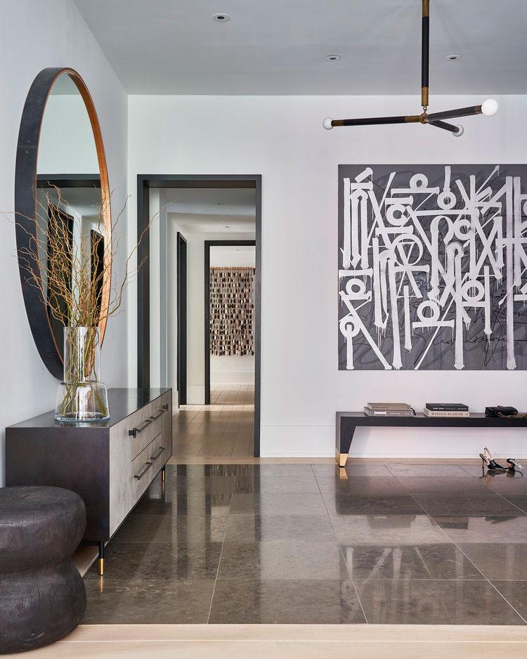 El mayor desafío fue la amplitud del salón. Para hacer que un espacio tan grande resulte acogedor, es necesario acotarlo por áreas. Para ello destinaron una zona a la televisión junto a la chimenea, a las espaldas del sofá se creó otra zona de relax y juego, y por último al final de la estancia, el comedor. Unificaron todo mediante el color, una paleta en tonos neutros que hace resaltar las obras de arte que atesoran los propietarios. La cocina, que forma parte del salón, tiene forma en L y cuenta con una gran zona de office y una isla central, toda ella es un diseño hecho a medida.