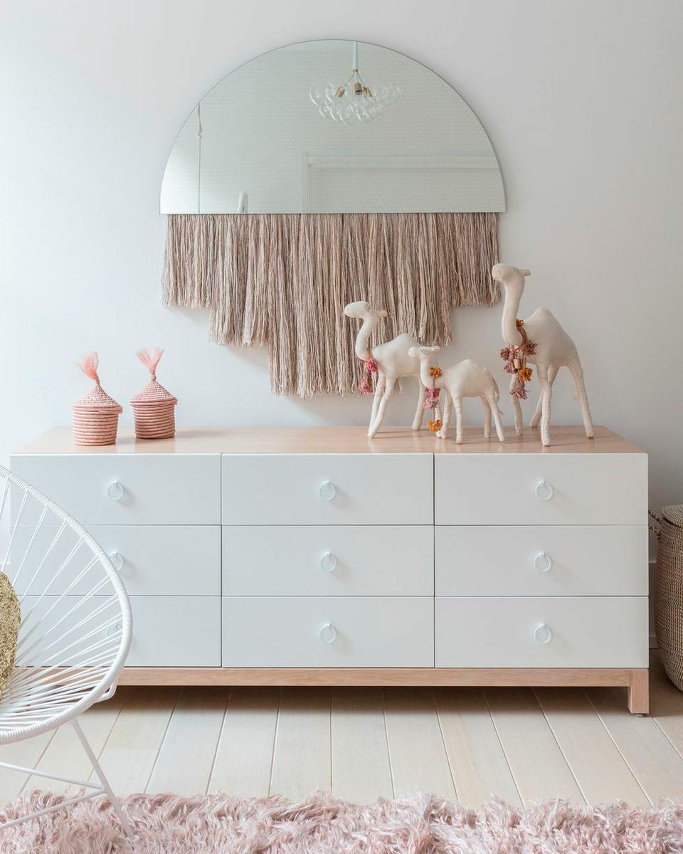 Encontramos después las habitaciones infantiles y de juego, muy neutras como el resto de la casa, aun así con muebles que hacen servicio a los pequeños inquilinos, son funcionales sin perder un ápice de diseño, con claro y marcado estilo nórdico. Cada vez me gusta más el espejo Half Moon Mirror de Ben & Aja Blanc con el que cierro el post, una pieza que viste cualquier espacio.