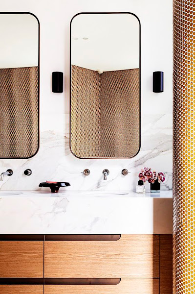 - Azulejos esmaltados. Los que tienen un acabado brillo y textura irregular como en la imagen superior en la fantástica cocina de Lauren Conrad.