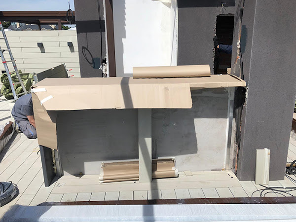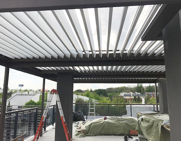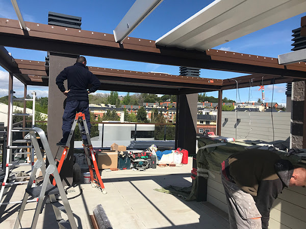 Dejamos paso a la empresa que se iba a encargar de instalar la pérgola bioclimática y el acristalamiento perimetral.