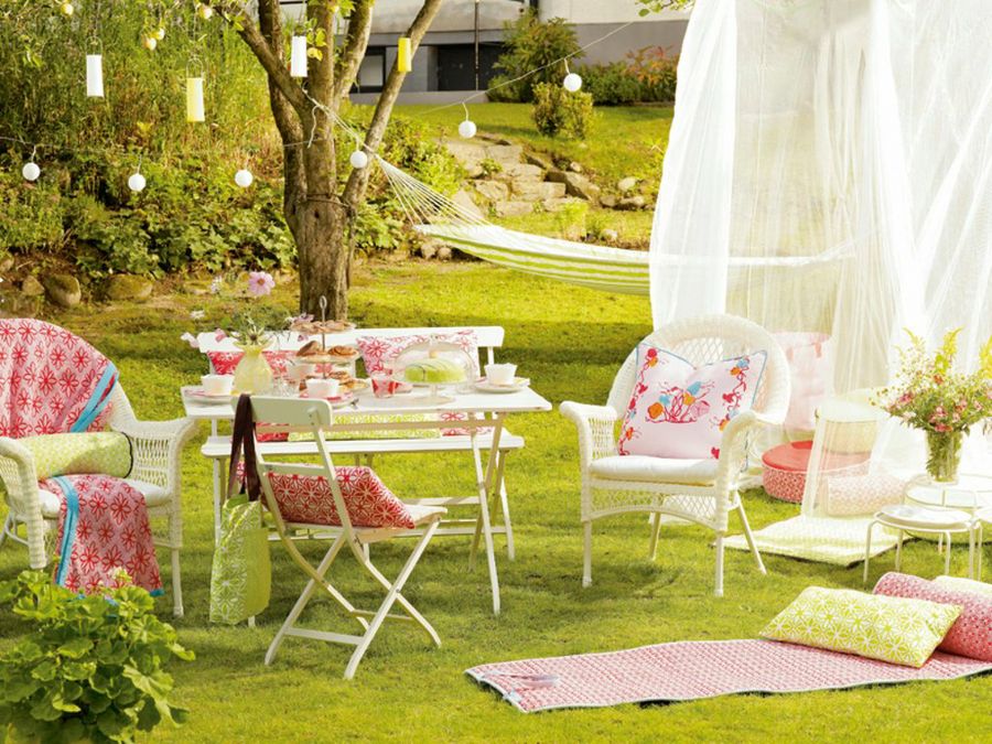 Ikea apuesta por el mobiliario en tonos blancos y gana contraste gracias a los textiles. El verde se complementa con el rojo y el blanco para crear dibujos muy originales que llenarán el jardín de magia. Además de los cojines y fundas para las sillas podemos encontrar toallas y esterillas para completar el conjunto.