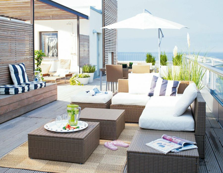 El blanco suele dar amplitud y mucha luz a las estancias, por lo que en las zonas de exteriores este efecto se multiplica. Combinado con muebles oscuros da un aspecto limpio que nos recuerda al estilo ibicenco. A la hora de dar un cambio a nuestros muebles de jardín los cojines de colores son ideales sino queremos invertir mucho dinero.