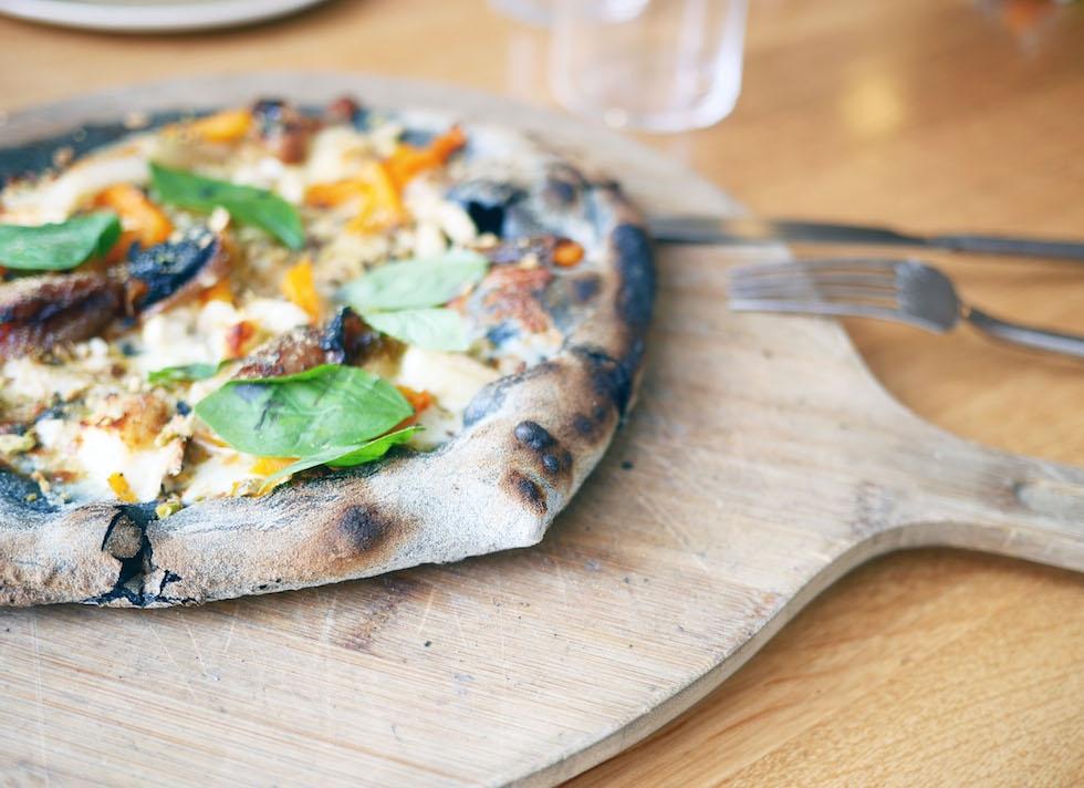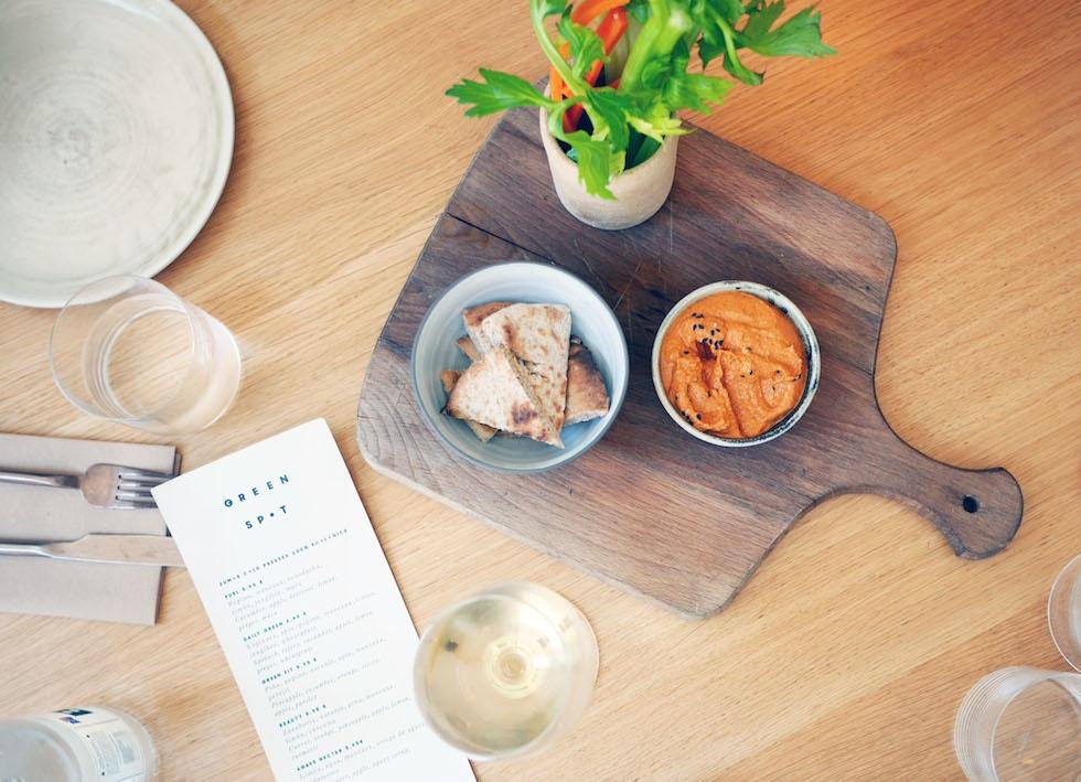 Así que, un domingo nos decidimos a conocer The Green Spot, un restaurante vegetariano en el Port Vell de Barcelona. Fuimos con nuestra hija de 2 años y no puedo estar más contenta con la experiencia. Al margen de que los camareros estuvieron de lo más simpáticos con Gala, a ella le encantó la comida, y a nosotros también. Pedimos un dip de pimientos y verduras crudas con pan de pita para compartir, y en mi caso opté por la pizza negra, que es la especialidad de la casa.