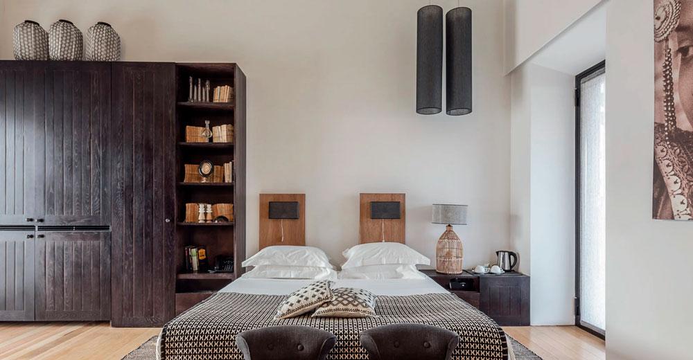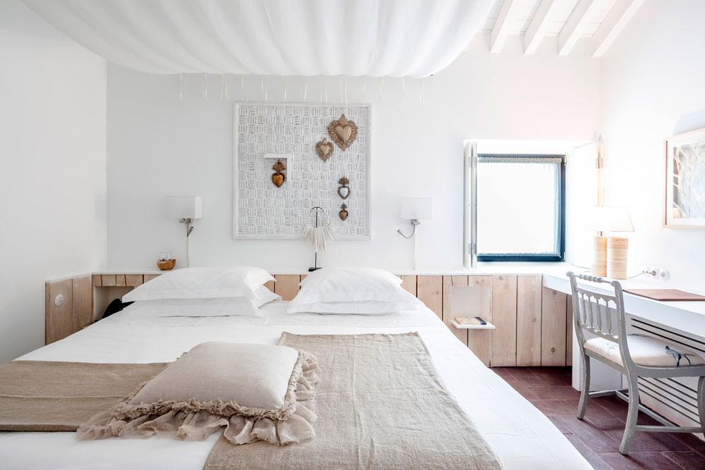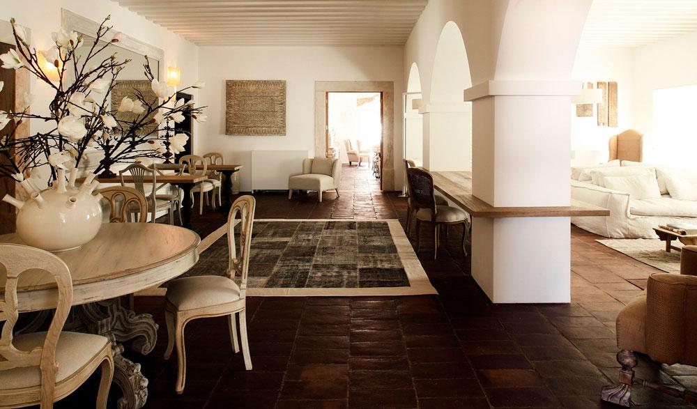 El interiorismo es obra de Rosarinho Gabriel. En la antigua casa se sitúan el salón y el restaurante Basilii, rindiendo homenaje a la familia que en su día vivió en la finca. El hotel cuenta con 19 habitaciones, desde los 20 metros cuadrados la doble, hasta los 84 metros la master suite. Cada tipología tiene una decoración distinta, excepto en las habitaciones más pequeñas donde se ha introducido algo de color, los neutros son los protagonistas. En todas ellas se combinan muebles antiguos, elementos tradicionales de la zona, piezas de madera que destacan sobre las paredes encaladas, obras de arte, piezas de decoración muy bien seleccionadas,… con la finalidad de que las habitaciones transmitan sensación de hogar.
