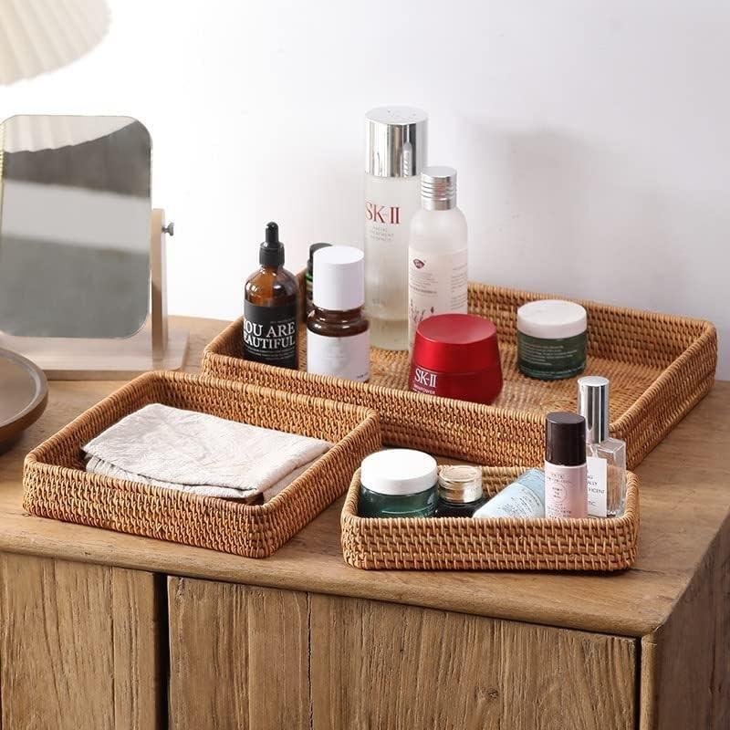 Para mantener el orden y la organización en el baño utiliza cestos o cajas decorativas (de mimbre o tela) para mantener todo en su lugar, desde toallas y papel higiénico hasta productos de higiene.
