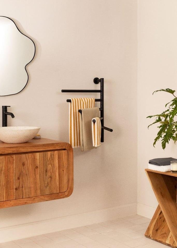 Para un cambio sutil pero efectivo, renueva los toalleros, el portarrollos de papel y los ganchos. Los talleros eléctricos son muy útiles en invierno, ya que te permite tener las toallas secas y calientes al salir de la ducha. Elige piezas que combinen entre sí para conseguir un look armonioso y moderno en todo el baño.