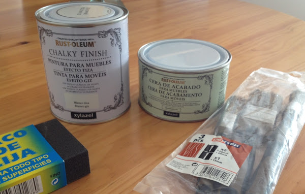 1.- Los materiales: Elegir una buena pintura a la tiza. Las hay de muy diversas marcas en el mercado y todas muy buenas, sólo es cuestión de ir probando hasta dar con la que más os guste Una brocha de cerdas muy suaves para evitar que la pintura deje marcas al aplicarla. Una lija y cera incolora.