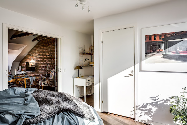 Me encanta este ático de estilo nórdico. Tiene un total de 69 m, que a priori podéis pensar que es poco, pero cuando está tan bien aprovechado se convierte en la casa ideal que todos quisiéramos tener. Me ha sorprendido mucho su distribución, en la que el cuarto de baño está en el centro del ático. Esto crea una distribución circular en la que cada ambiente está diferenciado. Como podéis ver en la ...